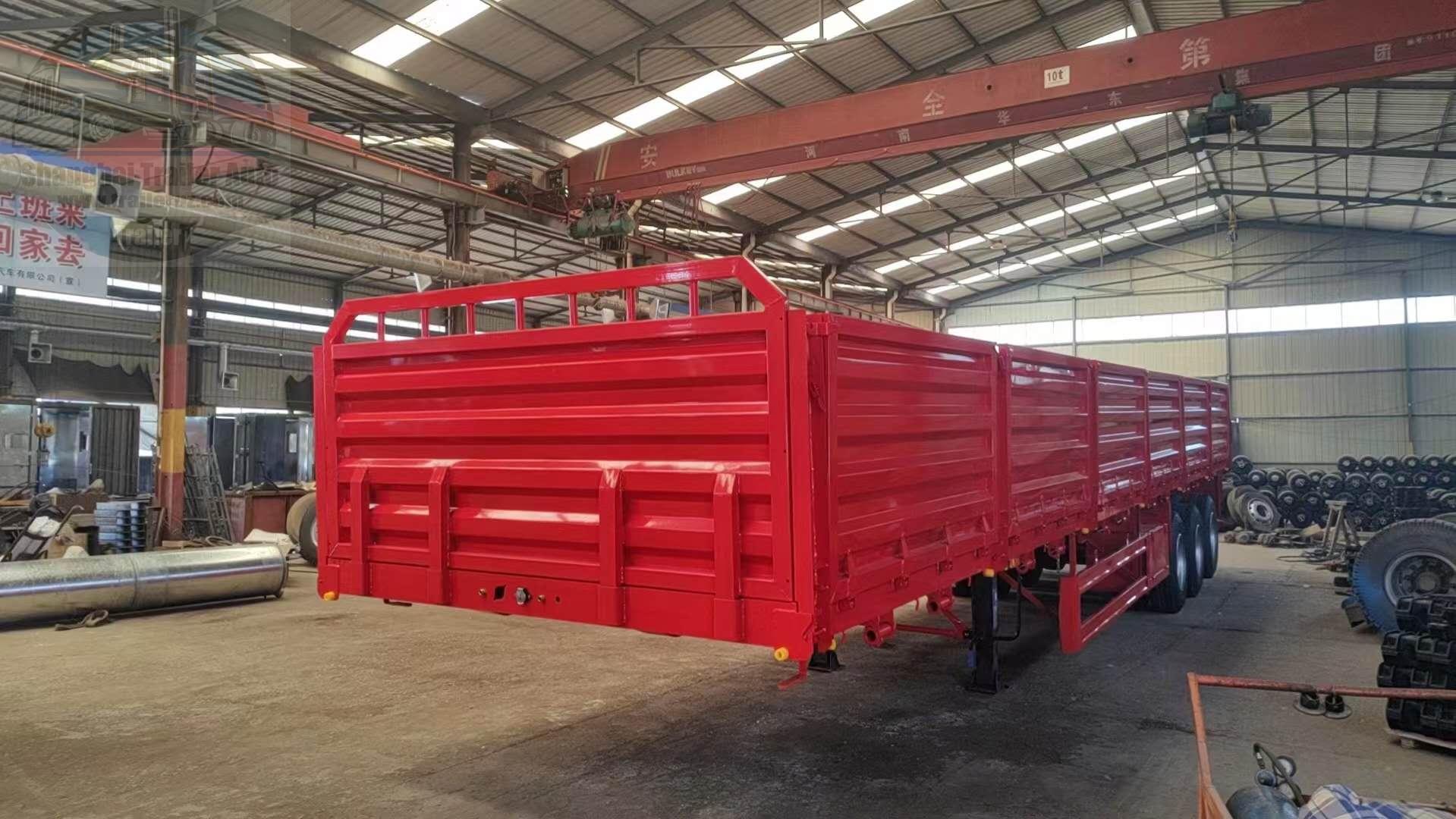 У нас есть 2-осный прицеп с боковыми стенками, 3-осный прицеп с откидными бортами, 4-осный прицеп с высокими бортами, зерновой прицеп и прицеп с боковыми стенками. Грузоподъемность составляет 30/40/60/80/100 тонн на ваш выбор. Настраиваемый цвет и высота боковой стенки.