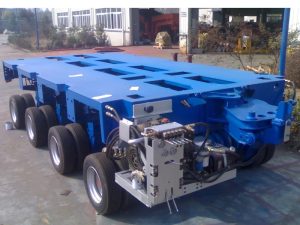 Гидравлический модульный прицеп Shanghai Trailer для перевозки крупногабаритных и тяжеловесных грузов, который разделяется на серии гидравлических полных прицепов, которые могут быть собраны в вес от 40 тонн до 2200 тонн различных серий.