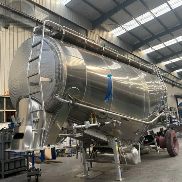 Shanghai Trailer выбирает высокопрочный углеродистый стальной материал, сваренный автоматическими процессами дуговой сварки под флюсом. Резервуары, использующие автоматический продольный/кольцевой сварной шов, прочные и ровные, могут быть независимым складским хранением, отгрузкой различных абразивных материалов, скоростью разгрузки, низким остаточным уровнем, высокими показателями безопасности, простотой эксплуатации. Хорошие характеристики простой конструкции, удобным обслуживанием, вулканизацией.