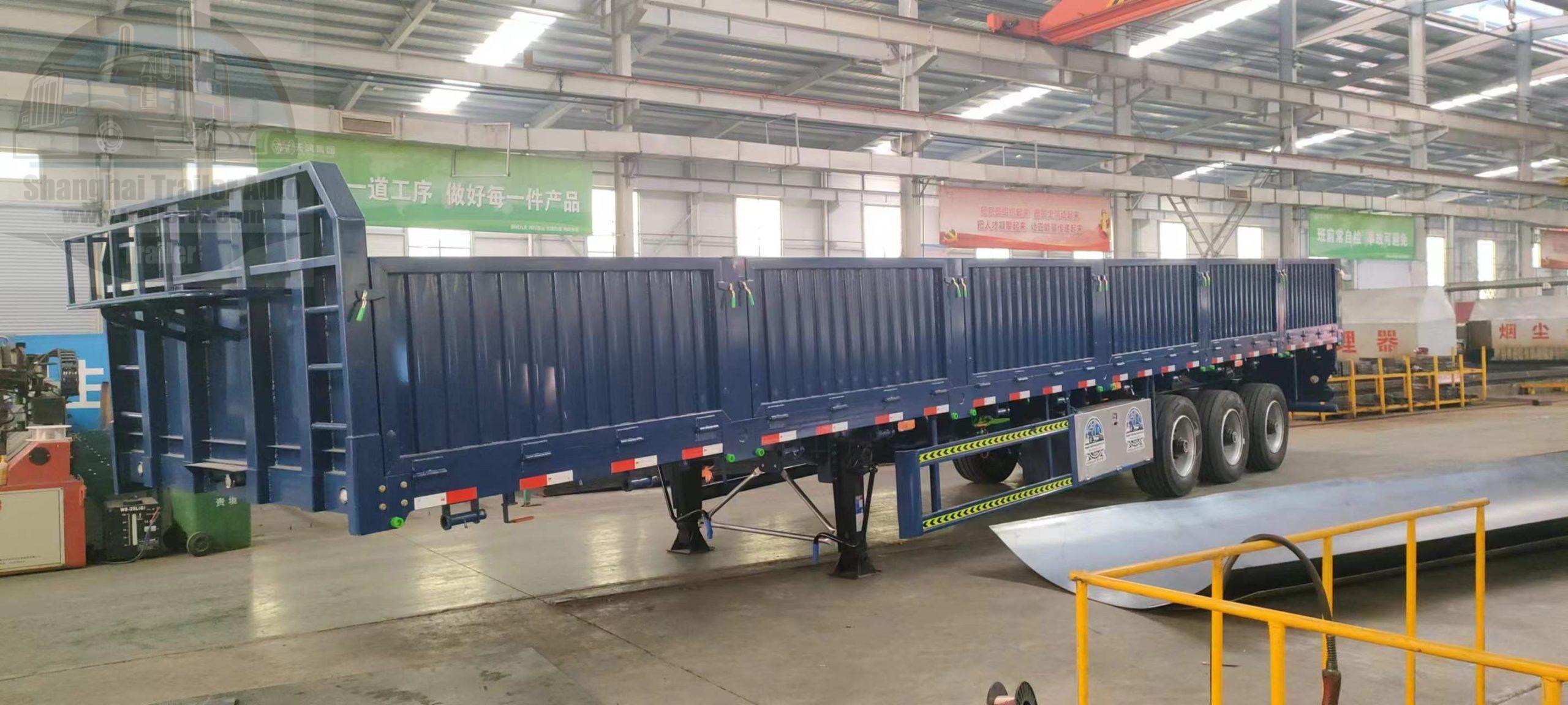 Прицеп с боковыми стенками Shanghai Trailer выбирает материал из углеродистой высокопрочной стали Q345B, сваренный с помощью автоматической дуговой сварки под флюсом.
