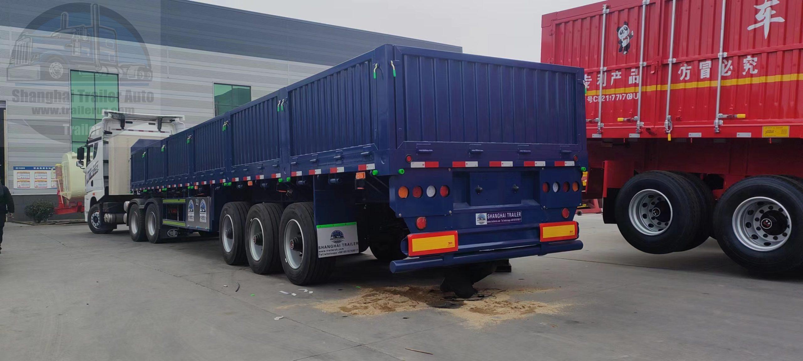 У нас есть 2-осный прицеп с боковыми стенками, 3-осный прицеп с откидными бортами, 4-осный прицеп с высокими бортами, зерновой прицеп и прицеп с боковыми стенками. Грузоподъемность составляет 30/40/60/80/100 тонн на ваш выбор. Настраиваемый цвет и высота боковой стенки.